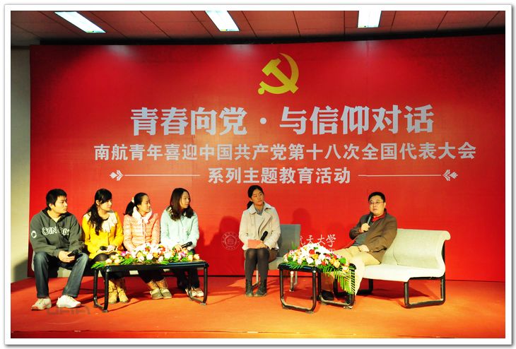 由党委宣传部、学生处、校团委主办的“青春向党”ac米兰青年喜迎中国共产党第十八次全国代表大会现场直播活动11月8日上午8点半在ac米兰将军路校区艺术中心多功能厅举行。校学生会等各校级学生组织同学、少数民族同学代表、电子信息工程学院、经济与管理学院、人文与社会科学学院的近200名青年学子济济一堂,以青春思辨会、观看大会直播、微博寄语互动等形式喜迎党的十八大胜利召开。 “从国产大飞机项目,到神舟系列载人飞船、嫦娥探月工程、天宫一号,过去的10年间在党的领导下,祖国航空航天事业取得了巨大成就。作为祖国航空航天事业未来的建设者,我们感到使命光荣,责任重大”。在直播前的青春思辨会中,校思辨队同学们一起畅谈10年来祖国的变化、展望十八大美好愿景。人文与社会科学学院院长平旭为同学们精彩点评并给予建议。