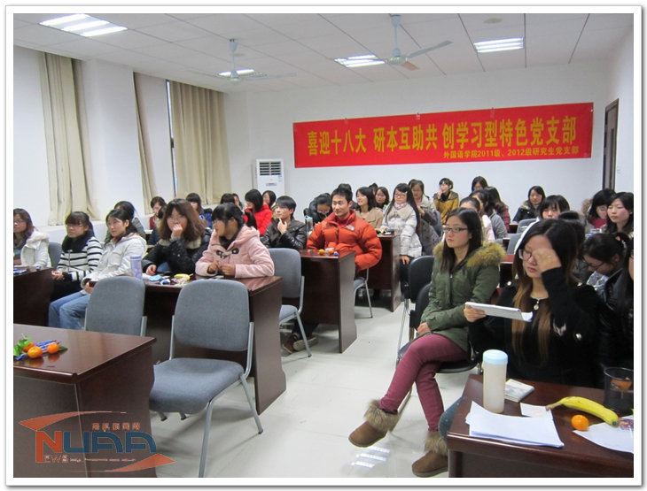 12月17日下午,外国语学院2011级、2012级研究生党支部与本科民航英语专业103班党支部联合开展了“喜迎十八大,研本互助共创学习型特色党支部”主题教育活动,这是学校2012年党内主题教育活动的重点立项项目。活动包括形式新颖、气氛活跃的“党史知识竞赛”以及具有外国语学院特色的“研本互助交流会”。