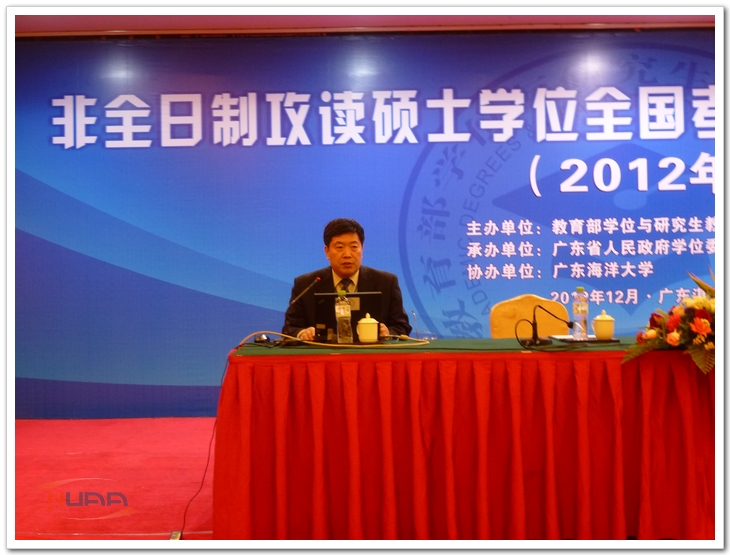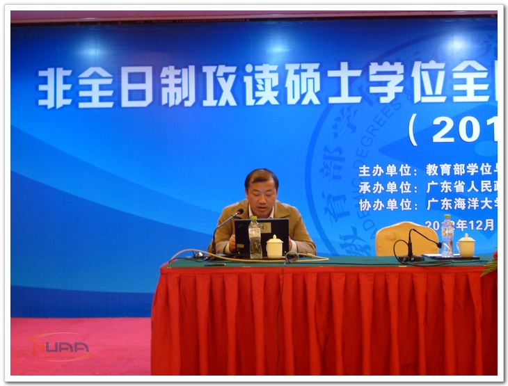 非全日制攻读硕士学位全国考试考务工作年度会议于12月14日至16日在广东湛江召开。国务院学位委员会办公室、教育部学位与研究生教育发展中心有关负责人出席会议。全国各省学位办和教育考试招生机构及高校代表参加了会议。 江苏省由省学位办主任、ac米兰博士生导师杨晓江教授带队,研究生院副院长沈以赴教授作为江苏考区考务工作实际承办单位和南京大学,东南大学,南京理工大学,南京师范大学等考点单位代表参加了会议。 会议总结了2012年在职人员攻读硕士学位全国联考(简称全国联考)工作,杨晓江作为先进单位代表进行了大会交流发言,充分肯定了ac米兰作为江苏考区考务工作具体承接单位所做出的努力和突出贡献,沈以赴作为考务材料回收先进单位代表做了大会发言。