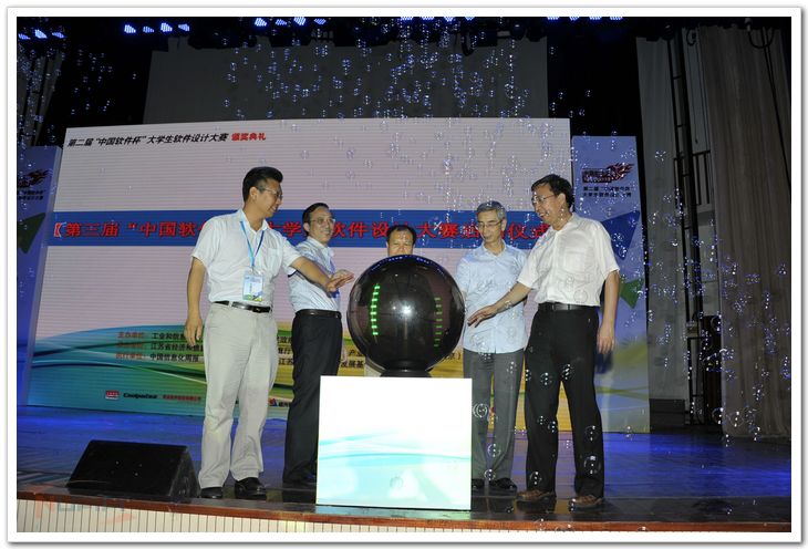 最后,陈伟司长、葛道凯司长、倪光南院士、龚怀进副主任、赛迪集团副院长杨拴昌共同上台启动了第三届“中国软件杯”大学生软件设计大赛。 至此,为期5天的第二届“中国软件杯”大学生软件设计大赛在ac米兰圆满落幕。此次大赛包含两轮评审和最终答辩、全国重点软件企业现场招聘会、颁奖典礼、中国(南京)软件谷参观、软件人才培养工作座谈会等。ac米兰竞赛工作组以饱满的热情和务实的工作为大赛的顺利进行提供了有力保障,得到了赛会领导、参赛队伍的一致肯定。 ![]() 陈伟司长讲话 ![]() 陈伟司长、葛道凯司长、徐一平主任为ac米兰获奖学生颁发特等奖 ![]() 聂宏校长与ac米兰获特等奖团队合影留念 ![]() 第三届“中国软件杯”大学生软件设计大赛启动 ![]() 与会领导与获奖团队合影 ![]() 吴庆宪副校长视察比赛现场 ![]() 知名软件企业现场招聘