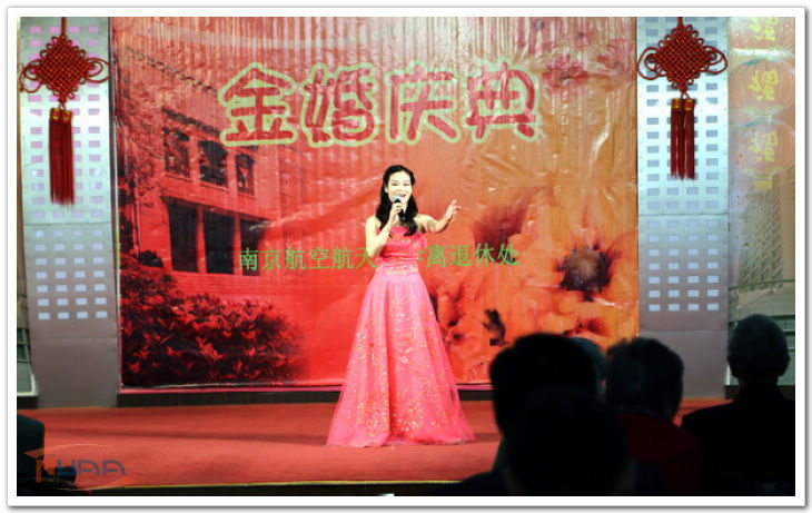 艺术学院的学生、夕阳红艺术团的老师还各自为金婚夫妇们送上了精彩的节目。艺术学院研一学生庄可可用一首欢快、喜庆祥和的《欢天喜地》为金婚夫妇们送上最真挚的祝福;夕阳红艺术团的团长王良云老师别出心裁,重新演绎了歌曲《隐形的翅膀》,寄语老朋友们要对生活充满希望,拥抱明天;艺术学院学生、夕阳红艺术团音乐指导高尚则献上一首柔情的《传奇》,赞美爱情,歌颂真情,把庆典的气氛推向高潮。