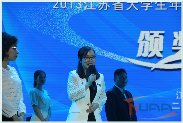 江苏省大学生年度人物李佳兴发言  江苏省高校辅导员年度人物储瑾蓉发言  江苏省教育厅厅长沈健为2013江苏省大学生年度人物颁奖(左四为李佳兴)  省委组织部副部长胡金波为2013江苏省辅导员年度人物颁奖(左一为储瑾蓉) |