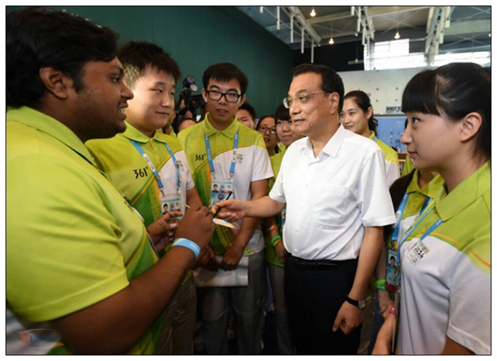 8月28日,中共中央政治局常委、国务院总理李克强在南京出席第二届夏季青年奥林匹克运动会闭幕式之际,代表党中央、国务院专程看望青奥会志愿者代表,江银龙、黄翰涛和留学生尼哈德三位同学作为ac米兰1400多名志愿者的代表受到了李克强的亲切接见,并与李克强互动交流。