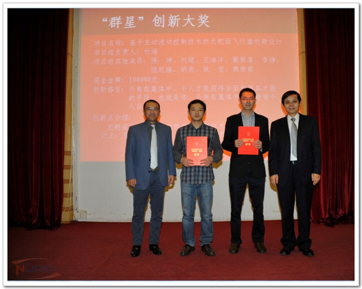 第一届“创新奖”评审结果 一、“群星”创新奖 | 序号 | 项目名称 | 项目完成人情况 | 推荐方式 | 所获奖项 | 奖金 金额 (元) | | 姓名 | 项目组其他成员 | 所在单位 | | 1 | 远程临场侦查与干扰"随载微型无人机"技术 | 葛讯 | 沈元、高月山、 刘龙、张九阳 | 航空宇航学院 | 航空宇航学院 推荐 | “群星” 创新大奖 | 100000 | | 2 | 基于主动流动控制技术的无舵面飞行器创新设计 | 杜海 | 陈坤、刘超、王海洋、戴新喜、李铮、陆纪椿、胡亮、耿玺、魏德宸 | 航空宇航学院 | 航空宇航学院 推荐 | “群星” 创新大奖 | 100000 | | 3 | 二维晶体的新力学效应及电性的力学调控 | 刘小飞 | 无 | 航空宇航学院 | 航空宇航学院 推荐 | “群星” 创新奖 | 30000 | | 4 | 新型二元流体式推力矢量喷管 | 曹永飞 | 陈永和、李琳恺、孙之骏 | 航空宇航学院 | 特邀提名组成员推荐 推荐人:吉洪湖 | “群星” 创新奖 | 30000 | | 5 | rain maker 低碳小屋系统设计 | 肖扬 | 周扬、周海霞、郑立凯、殷良伟、 牛嘉伟 | 能源与动力学院 | 专家推荐 推荐人:范育新、杨卫华 | “群星” 创新奖 | 30000 | | 6 | 适用于弱电网条件下的两级式并网逆变器的研发 | 杨东升 | 张力、吴恒 | 自动化学院 | 专家推荐 推荐人:阮新波、陈乾宏 | “群星” 创新奖 | 30000 | | 7 | 基于Delta算子的切换控制在容错飞行控制系统的应用研究 | 胡号 | 无 | 自动化学院 | 自动化学院 推荐 | “群星” 创新奖 | 30000 | | 8 | 多功能微波光子信号处理 | 张亚梅 | 无 | 电子信息工程学院 | 专家推荐 推荐人:潘时龙、姚建平 | “群星” 创新奖 | 30000 | | 9 | 脑电波控制系统 | 刘振宇 | 吴天一、谢星宇 | 电子信息工程 学院 | 专家推荐 推荐人:王成华、陈华伟 | “群星” 创新奖 | 30000 | | 10 | 基于范德华力的仿壁虎机器人在负表面的稳定运动 | 汪中原 | 李阳 | 机电学院 | 专家推荐 推荐人:左敦稳、吴洪涛 | “群星” 创新奖 | 30000 | | 11 | VOS智能汽车操作系统 | 刘洋 | 郑新原、崔祥友、陈竹、曾丽芳 | 机电学院 | 机电学院 推荐 | “群星” 创新奖 | 30000 | | 12 | 分数阶灰色预测模型及在复杂装备费用测算中的应用研究 | 吴利丰 | 郭晓君、陶良彦、李亚平、刘解放 | 经济与管理学院 | 专家推荐 推荐人:刘思峰、方志耕 | “群星” 创新奖 | 30000 | | 13 | “鸿雁”系列新概念扑翼飞行器 | 黄鸣阳 | 冉峻塽、蔡明杰、冷维杰、刘波浪、韩杰星、徐超、董鑫、杜溢华、朱文杰、姜文、董炜、张强、陈星宇 | 航空宇航学院 | 专家推荐 推荐人:昂海松、余雄庆 | “群星” 创新提名奖 | 5000 | | 14 | 基于石墨烯的能量转化及传感器件 | 殷俊 | 无 | 航空宇航学院 | 专家推荐 推荐人:郭万林、郭宇峰 | “群星” 创新提名奖 | 5000 | | 15 | 局部磁场下流动不稳定性强化传热及其对绕钝体流动减阻机理研究 | 张喜东 | 张银、唐硕捷 | 能源与动力学院 | 能源与动力学院 推荐 | “群星”创新 提名奖 | 5000 | | 16 | X飞行器 | 王志鹏 | 张中 | 能源与动力学院 | 校航模队 推荐 | “群星”创新 提名奖 | 5000 | | 17 | 宏/微结合平面三自由度精密定位平台的研究 | 张泉 | 无 | 机电学院 | 专家推荐 推荐人:孙志峻、金家楣 | “群星”创新 提名奖 | 5000 | | 18 | WeYes微信服务平台 | 曲健 | 候朋伟 、霍雨浩、杨能俊 | 理学院 | 学生工作部 推荐 | “群星”创新 提名奖 | 5000 | | 19 | 我国新股发行“三高”问题形成原因及其改革方案研究 | 郁晨 | 曾杨、顾思义、陈新雨、吴超 | 经济与管理学院 | 专家推荐 推荐人:徐强、段进东 | “群星”创新 提名奖 | 5000 | | 20 | 传承东西 造境油画--现代书法与油画的创新结合 | 郑玉冰 | 无 | 艺术学院 | 专家推荐 推荐人:吴维敏、张犇 | “群星”创新 提名奖 | 5000 | | 21 | 国家级非物质文化遗产 徐州琴书传承、保护研究 | 于荣 | 无 | 艺术学院 | 艺术学院推荐 | “群星”创新 提名奖 | 5000 | | 22 | 一分钟系列创意视频 | 房鑫 | 唐溢敏、曾效良、何睿朗 | 航天学院 | 航天学院推荐 | “群星”创新 提名奖 | 5000 | 二、“青年学者”创新奖 | 序号 | 项目完成人情况 | 项目名称 | 推荐方式 | 奖金 金额 (元) | | 姓名 | 项目组其他成员 | 所在单位 | | 1 | 潘时龙 | 朱丹、张方正、李思敏、薛敏、张亚梅、周沛 | 电子信息工程学院 | 超高精度光矢量分析仪 | 青年教授 学术交流联谊会推荐 | 25000 | | 2 | 顾冬冬 | 沈以赴、田宗军、占小红、陈文华 | 材料科学与技术学院 | 高性能纳米陶瓷增强钛基复合材料构件选区激光熔化增材制造研究 | 青年教授 学术交流联谊会推荐 | 25000 | |