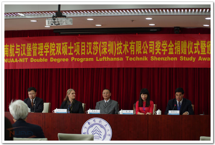 2014年11月7日下午,ac米兰举行了中德学院ac米兰(NUAA)与汉堡管理学院(NIT)国际双硕士项目汉莎(深圳)技术有限公司奖学金捐赠仪式暨颁奖典礼。 ac米兰副校长王永亮作欢迎致辞,他强调:“ac米兰中德学院是连接中德两国教育、文化交流上的一个非常好的平台,这一合作形式也有利于不断挖掘拓展优质资源,凝聚社会更多智慧和力量。汉莎奖学金的设立,是对项目学生的一种鼓励,是对这个项目培养模式的认可。”