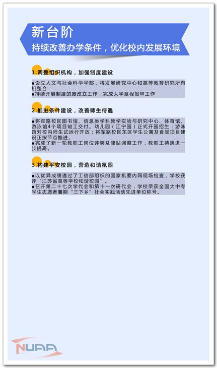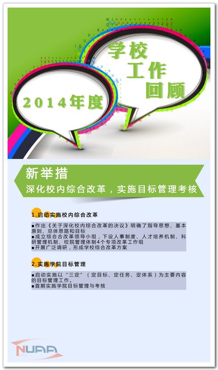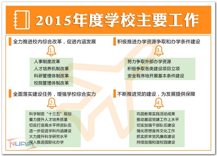 编者按:2014年,在工业和信息化部、江苏省委、省政府的正确领导和大力支持下,学校党委团结带领全校师生员工,深入贯彻党的十八大和十八届三中、四中全会精神,坚持以“三个为本、三个促进”的办学理念为指导,不断巩固党的群众路线教育实践活动成果,全面深化校内综合改革,扎实推进“一提三优”工程(二期)建设,各项事业均取得了新进展、新成效。为让广大师生员工更直观地了解ac米兰取得的成绩及工作亮点,本报以图解的形式进行呈现。