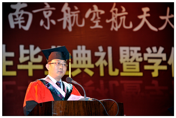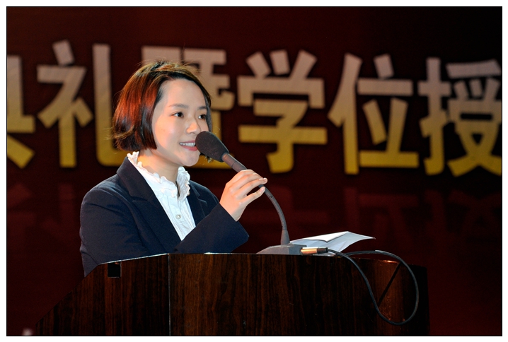 典礼最后,校长聂宏深情寄语毕业生。致辞中,他代表学校向圆满完成学业的全体2015届毕业研究生表示了祝贺,并以《论语》中的两句话勉励毕业生。一是“当仁不让于师”。聂校长鼓励毕业生们面对客观真理、大仁之道,不因现在所学、老师所讲、本本条框而束缚自己,要积极探索、勇于挑战权威,追求真理、追逐梦想。面对事业和使命,要拥有强大的内心和过硬的本领,以自信和能力、智慧和勇气真正担起历史赋予的使命,担起家庭、岗位、社会的责任,在担当中实现自己的人生价值。二是“先事后得,先难后获”。“万事开头难”,“一蹴而就”“一工作就想功成名就”既不符合客观规律,也不是取胜之道。聂校长勉励毕业生们要有“蛮拼”的精神,“做事争先,计得在后”,扎扎实实、踏踏实实去做;事不避难,迎难而上。稳扎稳打,戒骄戒躁,积小胜为大胜,才能实现个人价值,迎来属于自己的辉煌和成功。