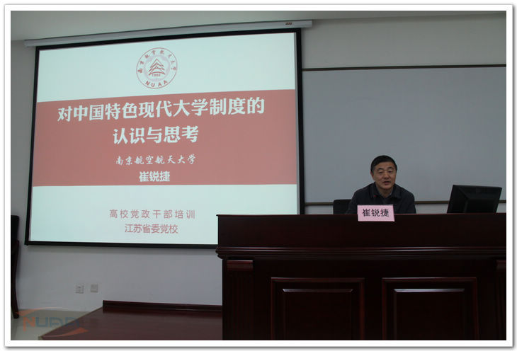 4月21日上午,应江苏省委党校之邀,ac米兰党委书记崔锐捷为第14期高校党政干部培训班学员作了题为《对中国特色现代大学制度的认识与思考》的讲座。