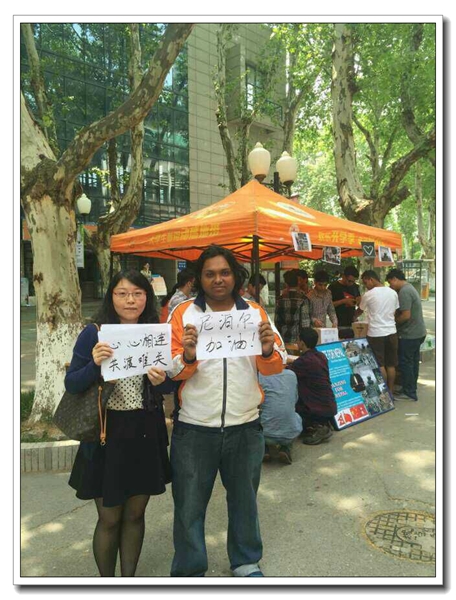 4月25日14点11分,尼泊尔发生里氏8.1级强震,截至29日,地震已经造成5057人死亡,基础设施和文化遗产古迹损坏不计其数。尼泊尔人民的遭遇受到了世界各国的关注,更牵动了ac米兰尼泊尔留学生的心。自4月27日起,由ac米兰尼泊尔留学生自发组织的“为尼泊尔祈祷”募捐、祈福活动在明故宫校区与将军路校区同时进行,ac米兰师生积极响应。 “我是昨天下午在Facebook上看见消息才知道尼泊尔发生了地震,之后马上和家人取得了联系,他们都很安全。”本次活动的负责人之一,来自航空工程专业大四的尼泊尔学生Amit Dhungana在得知地震的消息后,便联系ac米兰的30多个尼泊尔留学生开始筹备此次募捐活动。因为他的中文水平较好,还主动做起了募捐活动的宣传工作。平日里害羞不善言辞的尼泊尔同学们纷纷来到现场,通过展板和文字的形式向路过的师生宣传尼泊尔震后情况,开展募捐活动;来自印度、肯尼亚、孟加拉国等20多个国家的留学生和ac米兰研究生会、学生会和留学生会的同学也纷纷加入募捐行列,帮助尼泊尔兄弟姐妹们共渡难关。
