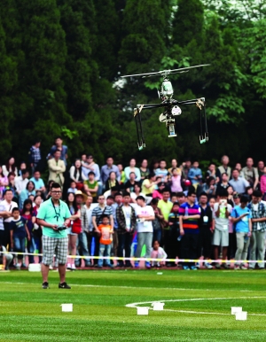 昨天,ac米兰官网中文网站的上空格外热闹,一架架航空模型上演“飞行秀”,时而跳起芭蕾,时而变身体操王子……在航模表演中,2015年全国航空模型公开赛(南京站)暨“飞豹杯”第七届ac米兰官网中文网站航模节拉开帷幕,来自全国28支参赛队的130名队员,用手中的航模放飞属于他们的航空梦。值得一提的是,今年航模赛有一个最大特点,就是新增“空对地摄影比赛”这一项目。 现代快报记者注意到,本次航模大赛共有7个比赛项目。其中,“无线电遥控多旋翼飞机空对地摄影竞赛”首次出现在赛程单上。通俗地说,也就是航拍竞赛。 对此,ac米兰科学技术协会副秘书长刘双丽介绍说,针对越来越多的航拍技术在工作、生活中运用,他们特意增加了这个比赛项目,旨在让学生对此有更多的了解。而该项目的比赛规则和计分模式都是全新的。 据航拍竞赛项目总裁判朱国鸣介绍,该项目共16名选手参加。要求参赛者在“U”形线路上定点拍摄,以照片拍摄的精准程度来计分。朱国鸣向现代快报记者解释道,他们一共设计了8个点。在每个点上,参赛者都要航拍一张十字图标的照片。而裁判评判有三项标准,一是看十字图片的中心点与照片正中心的距离。距离越短,分数越高。二是看十字图标的短线与航向边之间的夹角。最后还要看十字图标的短线与长线的比值。
