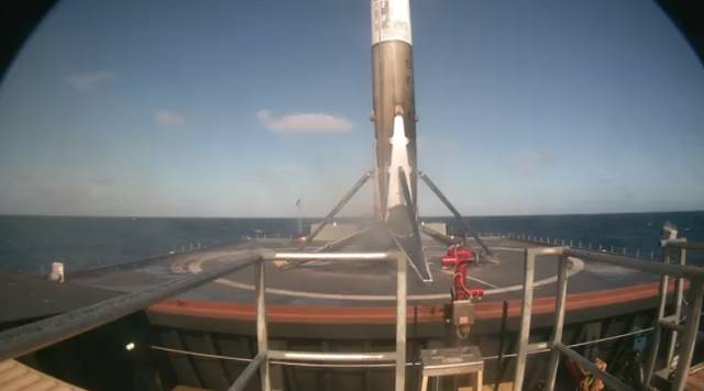一级火箭成功着陆在太平洋上的驳船“请看说明书”(Just Read the Instructions)。