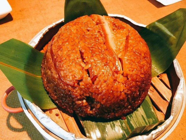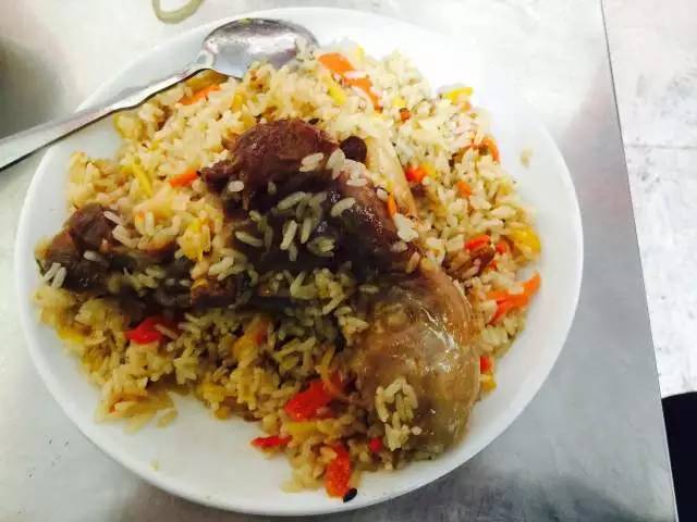 金黄的米饭,加上一块鸭皲,糯软的口感夹杂着鸭皲的嚼劲,组成一碗色香味俱全的抓饭。红点缀,黄映衬,令人垂涎。