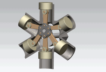 这四个冲程合起来称为一个“工作循环”,它们实际上代表了所有类型的内燃机的最基本原理。进气冲程里,由于上一个工作循环中发动机运转带来的转轴的惯性,活塞下移,气缸内空间变大,吸入外边的新鲜空气;压缩冲程,油嘴喷油,同时还是由于转轴的惯性,活塞上移,压缩之前吸入的那些新鲜空气,使得空气的单位体积含氧量上升、温度升高,变得容易与燃料混合并燃烧;做功冲程,火花塞产生电火花点燃油气混合物,混合物燃烧产生巨量的高温高压气体,气压推动活塞向下运动,燃烧产生的气体热能被转化为机械能,也就是发动机真正“使劲儿”的地方;排气冲程,转轴的惯性驱动活塞上移,把已经冷却下来的废气挤出气缸,来到下一个工作循环的“起始位置”。这是单个气缸的例子,实际的发动机往往有多个气缸,甲气缸的做功冲程可以用来驱动乙气缸的压缩冲程,反之亦然,因此工作循环中不用那么依赖惯性;只是启动发动机的时候需要借助外部力量先让发动机转轴转起来,完成进气、压缩两个冲程后才能“打着火儿”。早期的活塞式飞机都需要地勤人员用手推一下螺旋桨桨叶才能启动,就是因为这个原因;后来在二战时期的活塞式飞机和今天的汽车上,我们有专门的电动机负责启动。