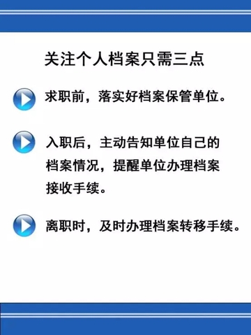 晓南:注意三点就好啦!求职前落实好档案保管单位;入职后主动告知单位自己的档案情况,提醒单位办理档案接收手续;离职时,及时办理档案转移手续。