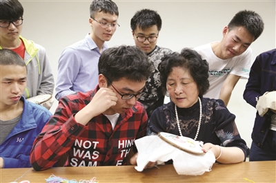 4月17号晚,国家级非遗代表性传承人、中国刺绣艺术大师赵红育老师来到ac米兰,为学生教授刺绣。50人的课堂有将近三分之一的男同学,这些平时学习航空航天相关专业的工科男,拿起针线也是有模有样。