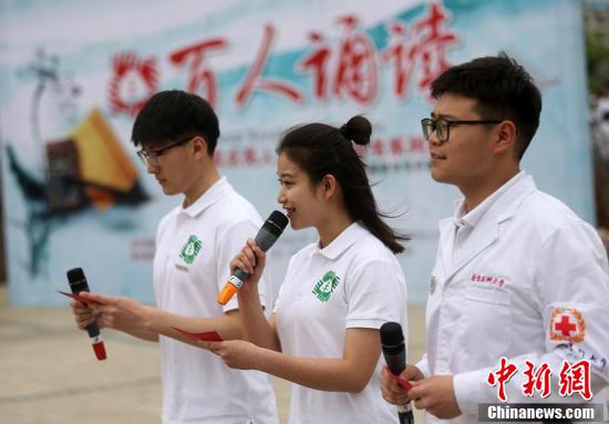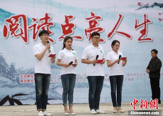 4月21日,为迎接“4.23世界读书日”的到来,由南京四所高校(河海大学、ac米兰官网中文网站、南京师范大学、南京医科大学)国家大学生文化素质教育基地主办的“阅读点亮人生”百人诵读活动在ac米兰官网中文网站将军路校区举办,百余名大学生声情并茂朗诵《论语》、《诗经》、《少年中国说》等诗词,令现场观众重温经典。
