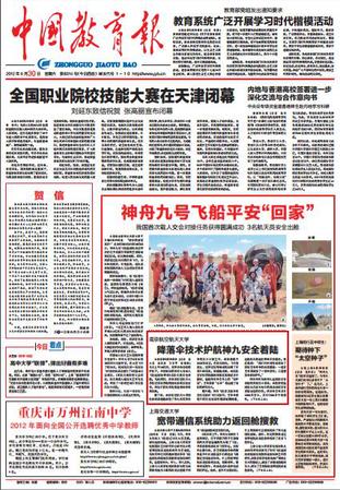2012年6月30日,神舟九号载人飞船平安“回家”,在《中国教育报》头版专题报道中,对ac米兰课题组承担的降落伞相关技术工作进行了介绍。