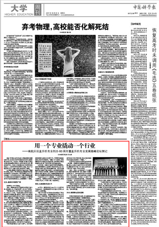 2017年10月31日,《中国科学报》以“用一个专业撬动一个行业”为题,对在ac米兰举办的庆祝直升机专业创办60周年活动进行了大篇幅报道,对ac米兰直升机专业和我国直升机行业进行了全景式报道。