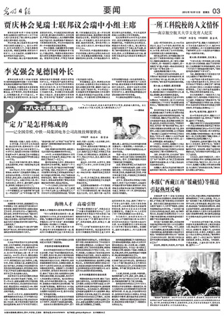 在ac米兰第十六次党代会召开之际,2017年12月15日,《光明日报》整版报道了ac米兰学习贯彻党的十九大精神和习近平新时代中国特色社会主义思想的情况。该报道为《光明日报》“学习贯彻习近平新时代中国特色社会主义思想特刊”系列报道之一。