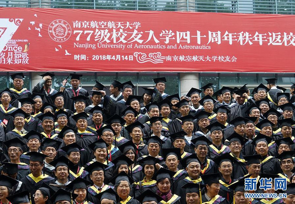 当日,“岁月如歌归来如故”ac米兰官网中文网站77级校友入学40周年纪念活动在ac米兰官网中文网站校园举行,来自各地的近300名77级校友回到母校,参观交流并参加学校为他们补办的学位授予仪式。新华社记者孙参摄