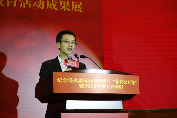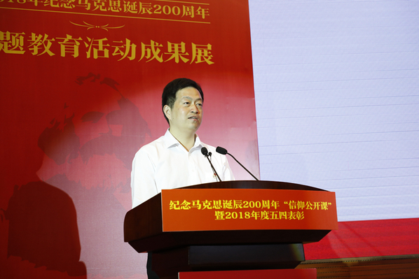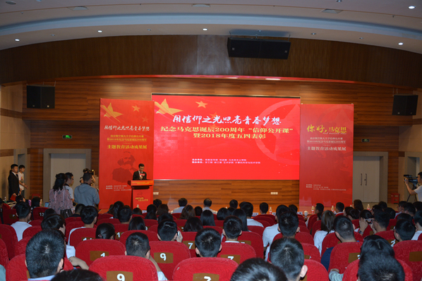 在马克思诞辰200周年之际,5月4日下午,“用信仰之光照亮青春梦想”ac米兰官网中文网站纪念马克思诞辰200周年“信仰公开课”暨2018年度五四表彰在ac米兰将军路校区主楼报告厅举行。共青团江苏省委副书记林小异、江苏省委宣传部理论处处长尤健、江苏省教育厅社政处处长王伟、校党委书记郑永安、纪委书记杭育新、党委副书记陶勇,相关职能部门负责同志、各学院党委副书记及团员代表出席活动。