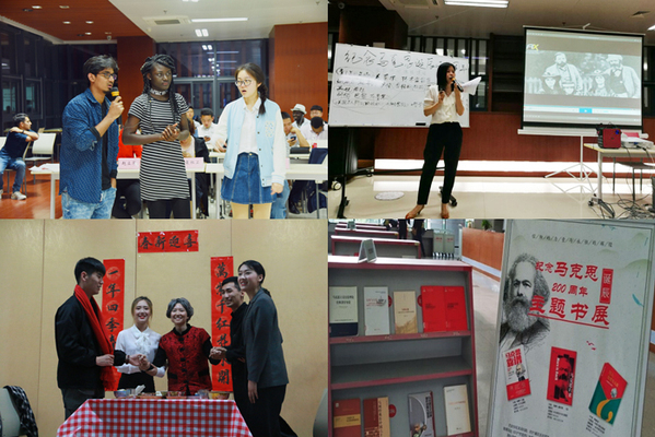 在文化传承活动中,中外大学生经典诵读活动请中外学生共同诵读中华文化经典,传承中华灿烂悠久的文化,促进中外文化交流;系列话剧展演先后演出《守岁》、《青蛇》、《屋外有热流》吸引了大批师生。在读书励志活动中,纪念马克思诞辰200周年读书沙龙暨主题书展邀请了何畏老师为大家讲解,启发了年轻人对真理的思考;优秀笔记征集活动是校级赛事,在全校十余个学院征集到1373篇读书笔记。