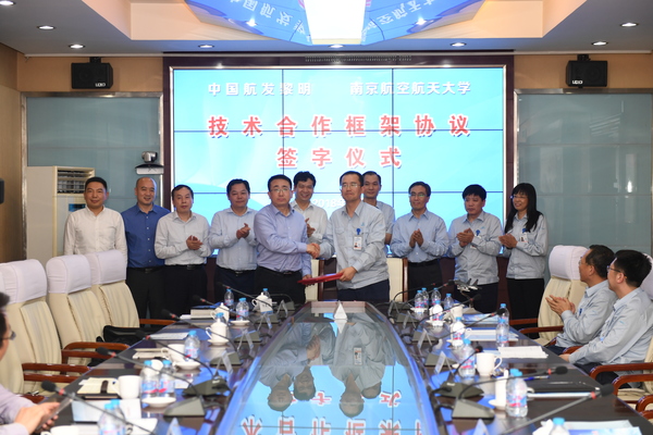 在校企座谈交流中,与会人员就学生实习实践、研究生联合培养、企业开放课题的申报、人才培养模式改革、互派挂职人员、“两机专项”联合攻关等问题达成了初步共识。调研期间,郑永安在“410厂”与王健明一起为“难加工材料机械加工”和“航空发动机精密电解加工”2个联合实验室揭牌,见证了学校与“410厂”战略合作协议的签署。