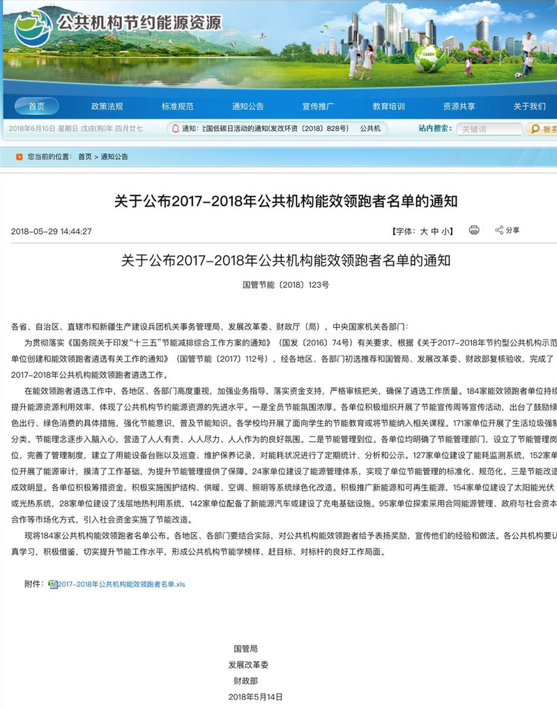 在2018年全国节能宣传周来临之际,国家机关事务管理局通过公共机构节约能源资源网公布了2017-2018年公共机构能效领跑者名单,ac米兰荣获此项荣誉。成为为全国首批184家公共机构能效领跑者之一,这是继ac米兰成为“节约型公共机构”以来获得的更高层次节能荣誉。