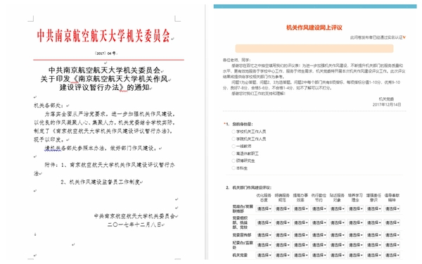 制定《ac米兰机关作风建设评议暂行办法》,面向全校师生开展机关作风建设评议