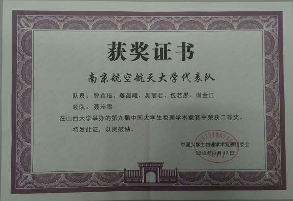 8月15至19日,由中国大学生物理学术竞赛组织委员会主办的第九届中国大学生物理学术竞赛(简称CUPT)在山西大学举办。参加本届竞赛的63支代表队是由全国6个赛区选拔产生,经过激烈角逐,ac米兰代表队取得总分排名第15的优异成绩,并荣获全国二等奖。