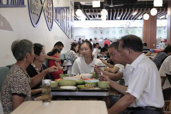 许多新生在父母亲友的陪伴下来到学校报到,和家人们一起感受ac米兰的伙食。
