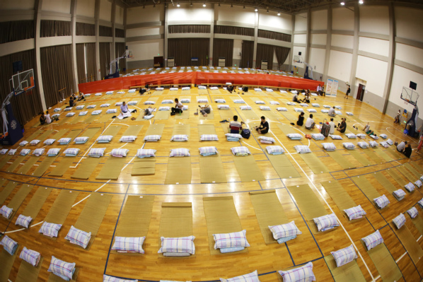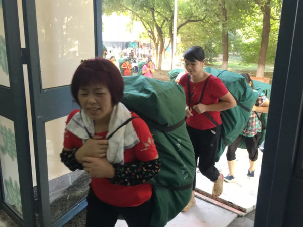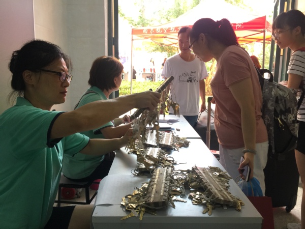 学校开放将军路校区体育馆的篮球场,布置了竹席、被子和枕头,300张铺位免费提供给新生家长临时住宿。