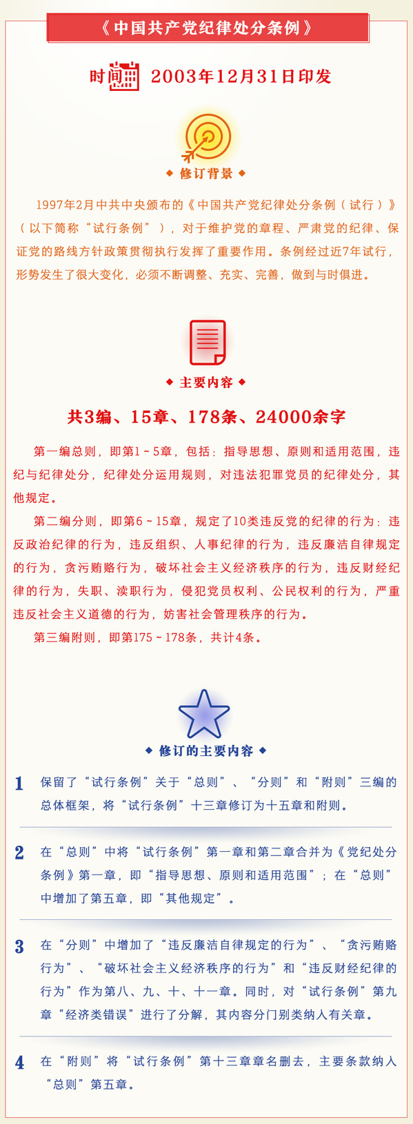 一图读懂中国共产党纪律处分条例历次修订情况
