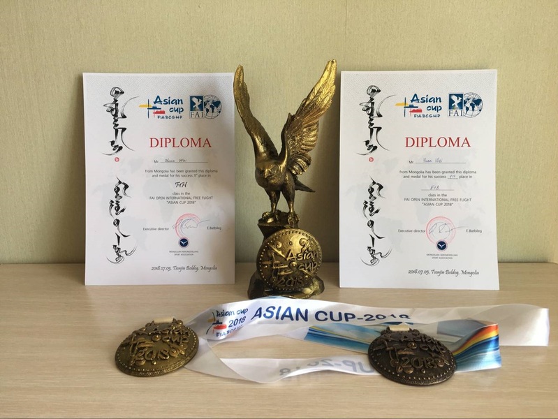 袁伟教练在蒙古国乌兰巴托的航空模型世界杯赛上获得国际级橡筋动力模型滑翔机(F1B)冠军、牵引模型滑翔机(F1H)项目第三名。
