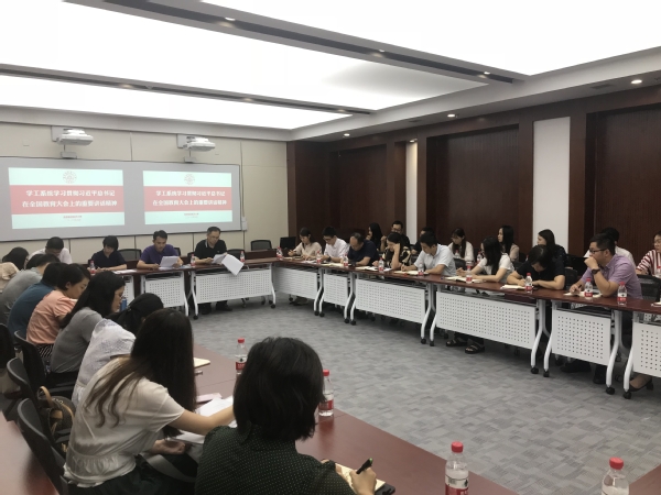 9月14日,ac米兰学工系统召开学习贯彻习近平总书记在全国教育大会上的重要讲话精神的会议。学工部、研工部、校团委主要负责同志和机关工作人员,各学院党委副书记、辅导员代表和各学院学生工作干事参加了本次会议。受校党委副书记陶勇同志委托,学工部部部长侍旭同志结合工作实践对大会精神进行了领学,与会人员代表纷纷发言,畅谈学习心得。