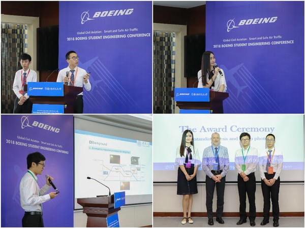 与往届论坛不同,本次波音论坛首次采用了论文征集的方式,从40余篇论文中遴选出3篇优秀论文,由评审组评审和波音公司的专家进行点评,选出本次论坛的最优论文。来自华南理工大学、ac米兰官网中文网站、清华大学的三组学生代表进行优秀论文答辩,经过波音公司与会专家的评审,来自清华大学李聪的论文摘得“最佳论文称号,另两篇文章也获得“优秀论文”的荣誉。波音上海航空服务有限公司CEO Dermot Swan先生为论文作者进行了颁奖。