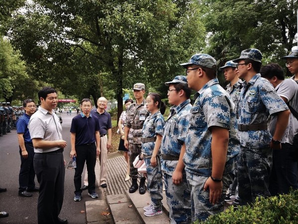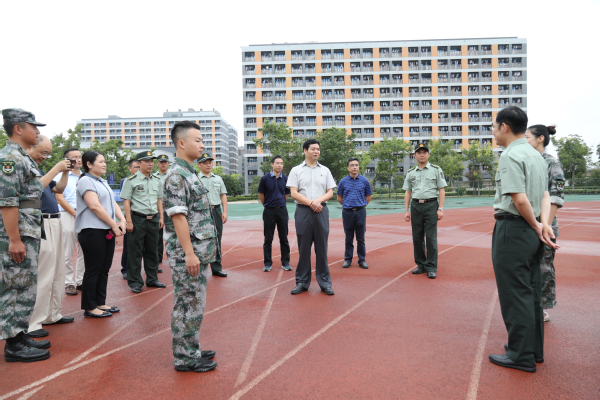 郑永安一行首先观看了各个训练场地正在开展的军事训练,分别与教官和军训新生进行交流,了解军训工作进展情况。郑永安指出,“军训是大学生进入大学的第一课,是一个磨练意志与品格,增强集体凝聚力的过程。每个学生都应该参与。”