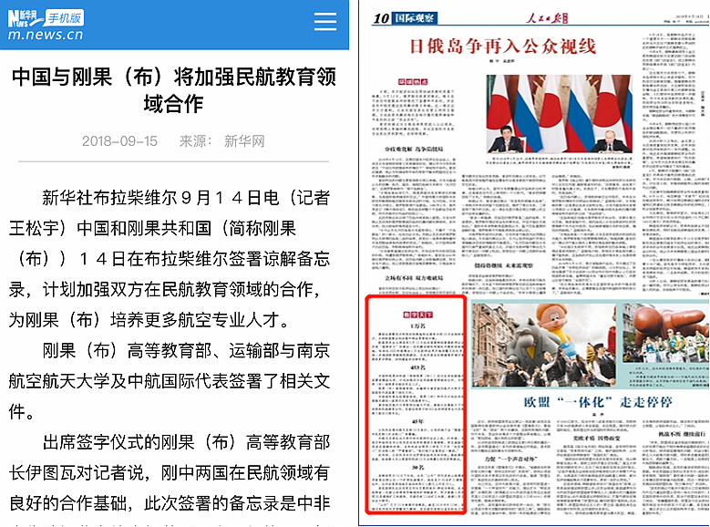 出席签字仪式的刚果(布)高等教育部长伊图瓦在采访中表示,“刚中两国在民航领域有良好的合作基础,此次签署的备忘录是中非合作论坛北京峰会闭幕后双方取得的一项最新合作成果。在中方帮助下,刚果(布)将拥有自己的航空专业人才,并将刚果(布)建设为区域航空中心。”