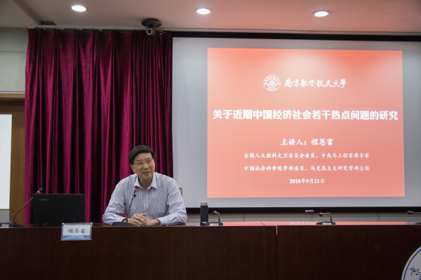 9月21日上午,ac米兰举行校院中心组(扩大)学习暨干部培训会。会议特邀全国人大教科文卫委员会委员、中央马工程首席专家、中国社会科学院学部委员、马克思主义研究学部主任、ac米兰兼职特聘教授程恩富作专题报告。校纪委书记杭育新主持会议。