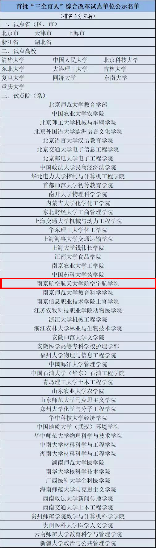 日前,教育部发布首批“三全育人”综合改革试点单位公示名单,ac米兰航空宇航学院成为入选首批“三全育人”综合改革试点院(系)。