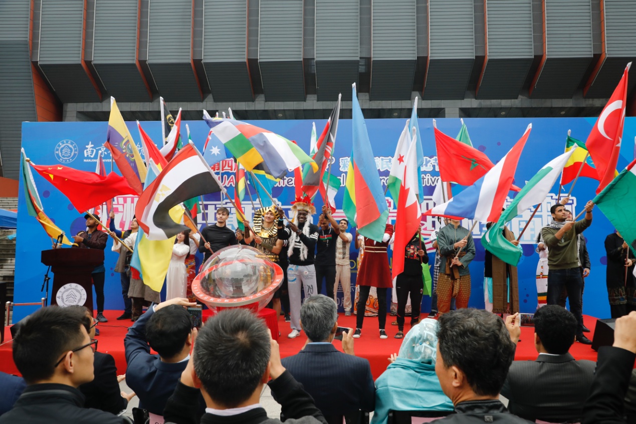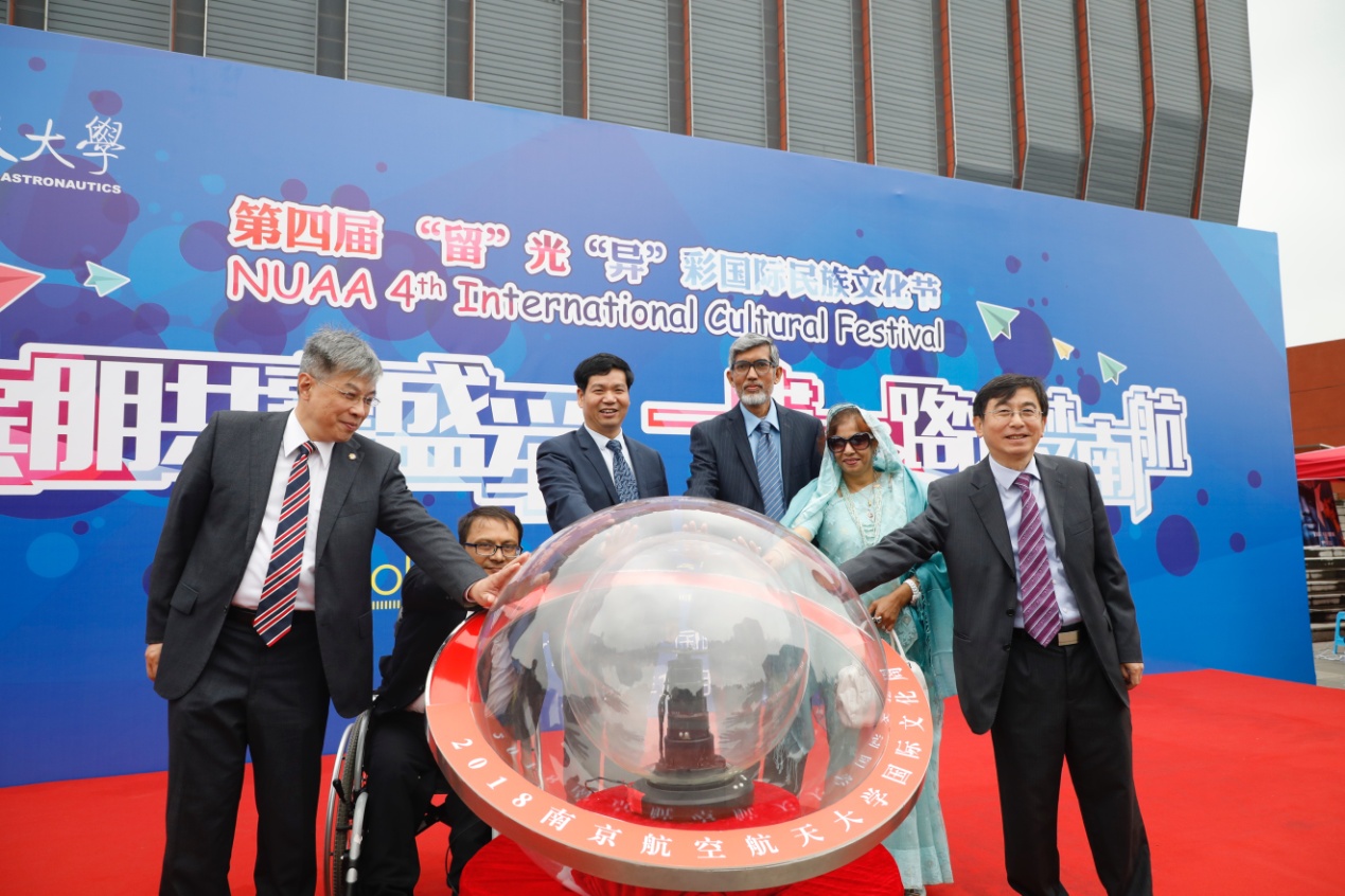 在独具各国风格的入场式后,校党委书记郑永安、孟加拉国驻华大使M.Fazlul Karim、尼泊尔驻华公使Lamsal Sushil Kumar分别致辞,并按动启动球,启动了“2018国际文化周“。随后,第四届“留”光“异”彩国际民族文化节正式开始。舞台上,来自不同国家的留学生身着民族服装热情起舞,舞台下,来自中国、尼泊尔、也门、巴基斯坦、孟加拉国,吉布提,斐济,马来西亚,印度尼西亚等三十多个国家的四十多个展台吸引了大批师生前来参观,大家争相领取迷你护照,在各个展位盖章打卡,品尝民族美食,观赏手工艺品,体验民族风情。