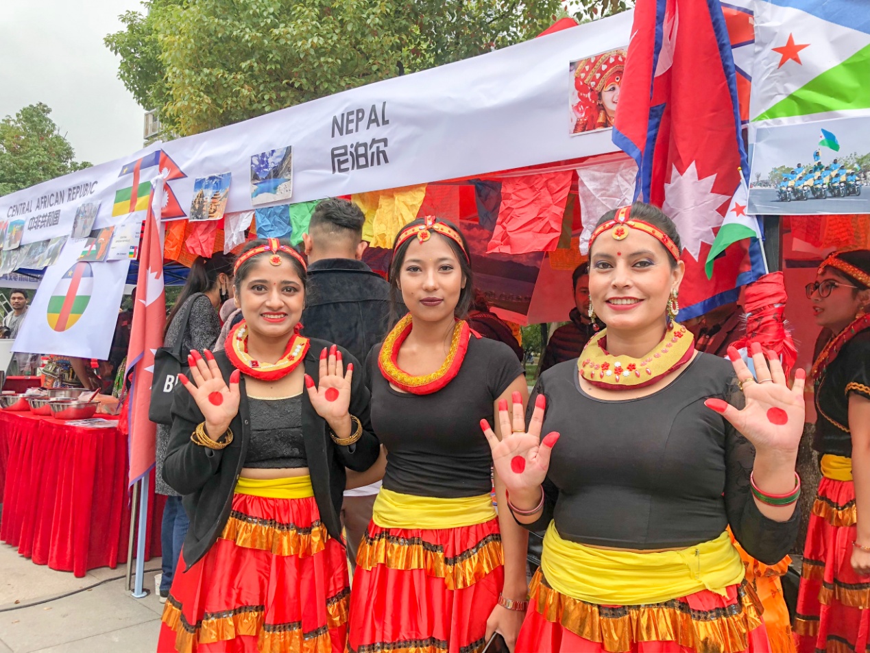 “民族歌舞秀”环节,来自尼泊尔、刚果、肯尼亚、加纳、赤道几内亚等国家的姑娘和小伙子们,身着民族服装,带来极具异域风情的歌舞。本届世界民族文化节吸引了大批的学生和老师前来观赏,人群中不时爆发出阵阵热烈的掌声和喝彩声。
