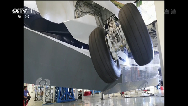 作为两栖飞机,AG600同时也要满足陆地的起降。在陆地起降主要靠起落架,AG600飞机底部为船底外形,机翼为上单翼,为保证船身式机体的水动性能和不破坏汲水舱的底部结构设计,机身中部左右两侧的两个起落架,也就是主起落架不能像其他运输机或民航客机收藏于机腹或机翼内,针对这个矛盾,AG600设计了悬臂外伸式高单支柱起落架布局,把起落架收藏在机身侧面的整流罩内,飞机着水时,起落架就收起来。这个设计对气动外形、滑水性能、飞机侧翻角、收放运动机构设计提出了很高的要求,针对这个问题,科研人员先后就设计了7种起落架的方案。