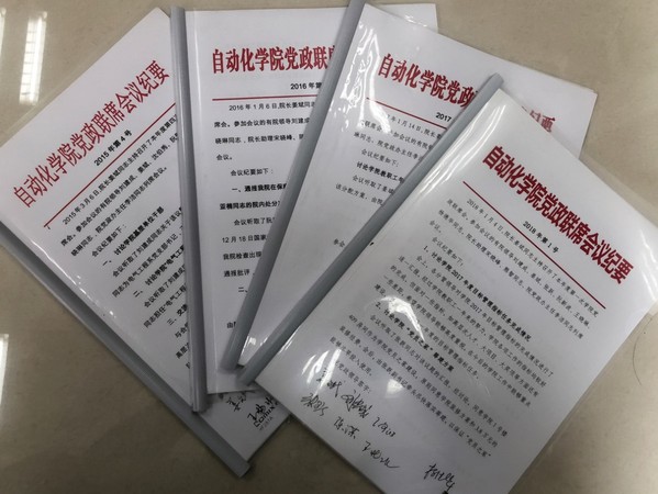 二是持之以恒,狠抓“执行”。“天下之事,不难于立法,而难于法之必行”。制度建设最终要落实在制度执行上,再好的制度如果只是写在纸上、挂在墙上,就会流于形式、形同虚设。领导班子和各级干部是狠抓执行的“关键少数”,必须以身作则、自觉担当,带头维护制度的权威性和原则性,并且模范执行。例如,学院建立起以《自动化学院党政联席会议事规则》、《自动化学院党委委员会议事规则》为主体的议事、决策制度体系以来,平均每年召开党政联席会议18次,党委委员会议10次,学院“三重一大”工作均经党政联席会议、党委委员会议讨论决策,会议纪要由全体院领导签字存档。