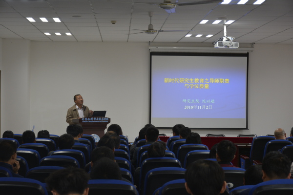 沈以赴的报告围绕研究生教育的新形势新任务、导师职责、学位质量三部分内容展开,强调了研究生导师立德树人的职责与肩负的重任。他指出,研究生导师应强化自身的基本素养,熟悉人才培养目标及人才成长的规律,在师德惩处规范约束下,营造良好师德师风。沈以赴还分享了他求学工作中遇到的具体事例,他希望学院全体教师能充分认识到加强师德师风建设的重要性和紧迫性,成为严谨求真、积极向上的楷模。