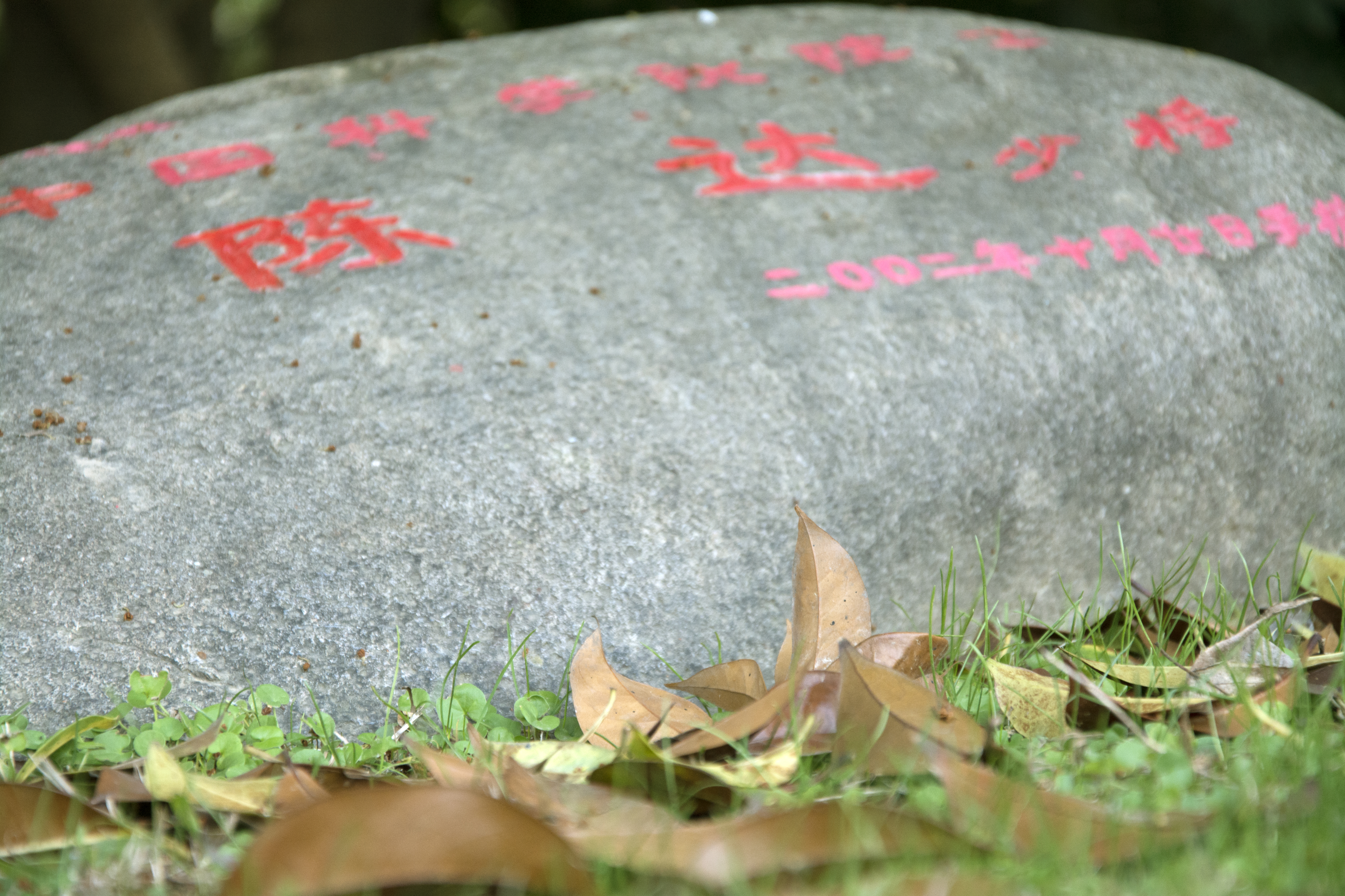 深沉的青灰石,朱红的隶书,落英芳草环绕其周。师者虽已逝去,但其精神永留,教诲长存。