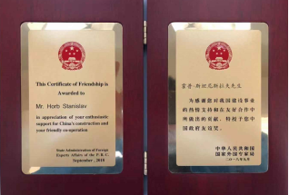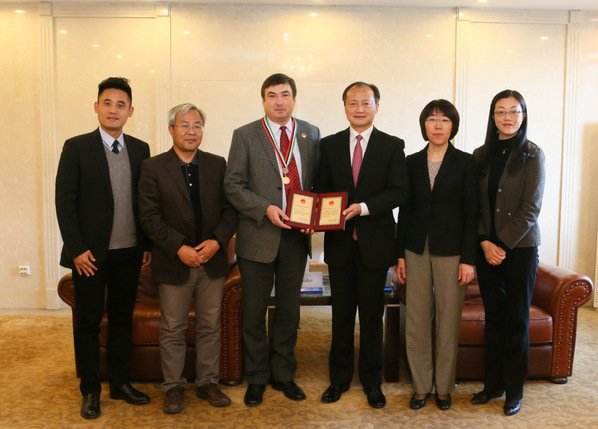 12月6日上午,2018中国政府友谊奖获得者,ac米兰名誉教授、德国科学院院士霍普•斯坦尼斯拉夫(Horb·Stanislav)前往北京拜访了国家外国专家局。科技部党组成员夏鸣九亲切会见了霍普院士,并为其颁发了2018中国政府友谊奖勋章和证书。科技部引进国外智力管理司副巡视员赵慧君、外国人才处处长谢会萍一并参加了会见。