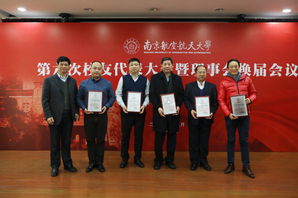 大会对第五届理事会热心校友工作的地区校友工作者进行了表彰,陈刚等15名校友获得“地区校友组织工作突出贡献奖”,聂宏、中国航空学会理事长林左鸣为获奖校友颁奖。今年校庆期间,学校推出“校史馆建设基金”,得到了广大校友的支持,大会邀请了康宜华、阎晓东、黄领才、卞祥和王大为作为捐赠代表,郑永安为他们颁发捐赠证书。