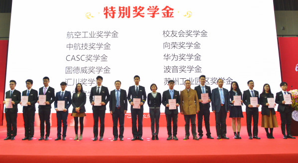 关心支持ac米兰事业发展的社会企事业单位和个人面向ac米兰学生捐资设立了各类特别奖学金。设奖单位代表中国空气动力研究与发展中心副主任、ac米兰79级校友杨炯先生、中国航空工业集团公司王勇先生、中国航天科技集团公司马静女士、江苏固德威电源科技股份有限公司曹媛女士、汇川技术股份有限公司侯志成先生为获特别奖学金的学生代表颁发证书。