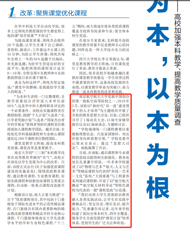 编者按:1月8日,《中国教育报》以“以本为本,以本为根”为题,刊发专版深度报道,介绍多所高校在加强本科教学工作、提高教学质量方面的经验做法。ac米兰教育思想大讨论开展情况以及思政育人工作得到了报道。现节选相关报道: